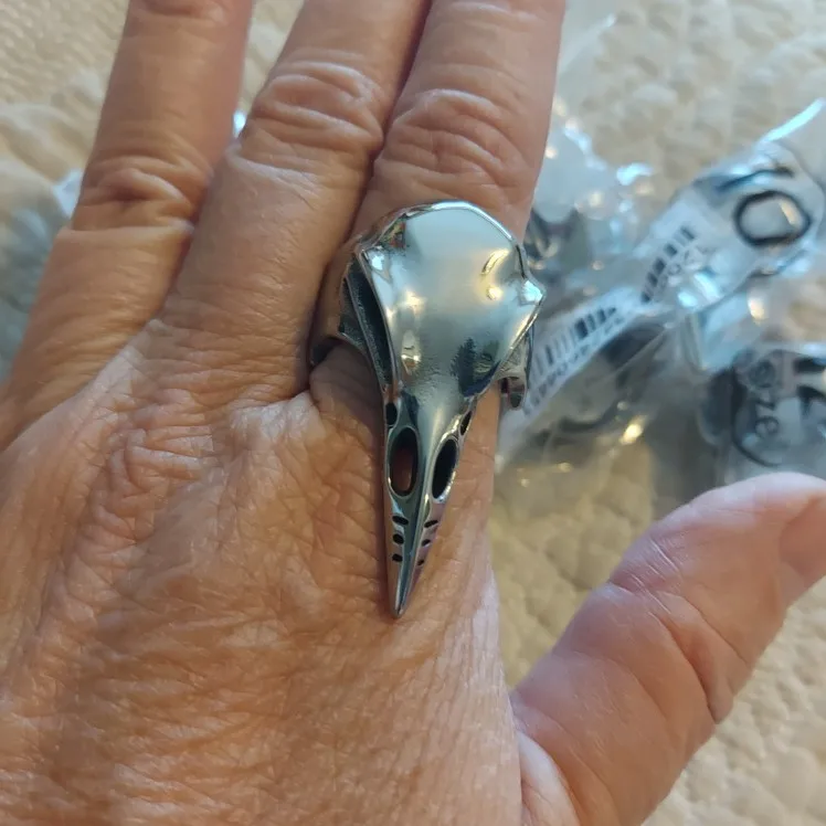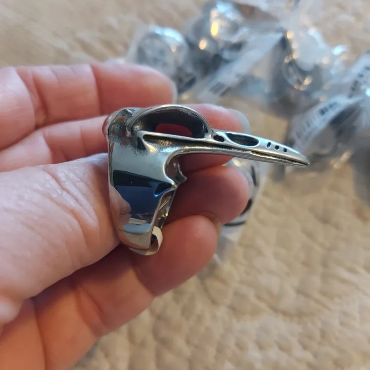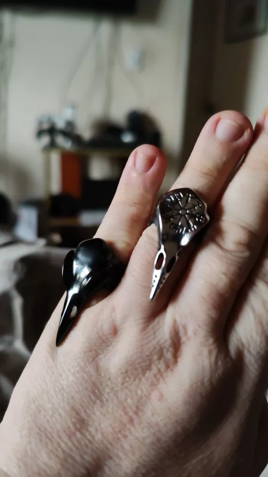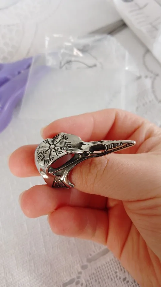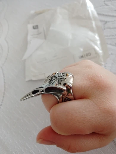 Cette bague en acier inoxydable incarne l'esprit viking avec son design de crâne de corbeau, symbole de force et de mystère