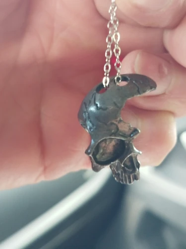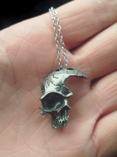 Ce pendentif unique, représentant un visage de squelette incomplet, apporte une touche rebelle à votre look