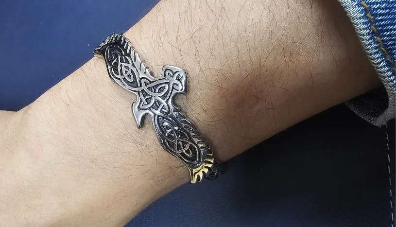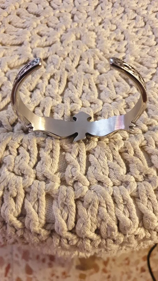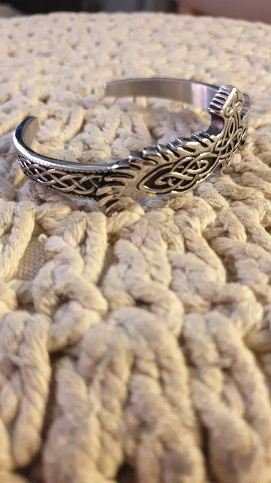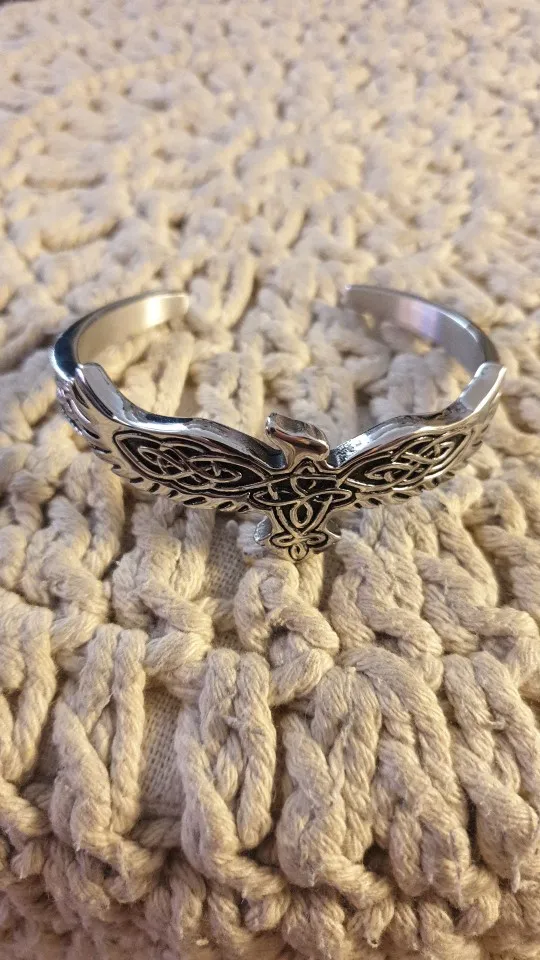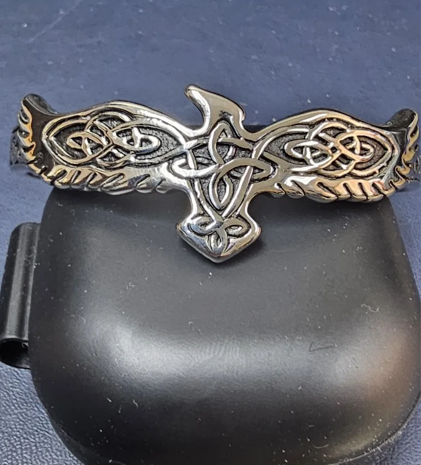 Ce bracelet en acier inoxydable allie élégance viking et symbolisme nordique avec son aigle gravé, emblème de force et de sagesse